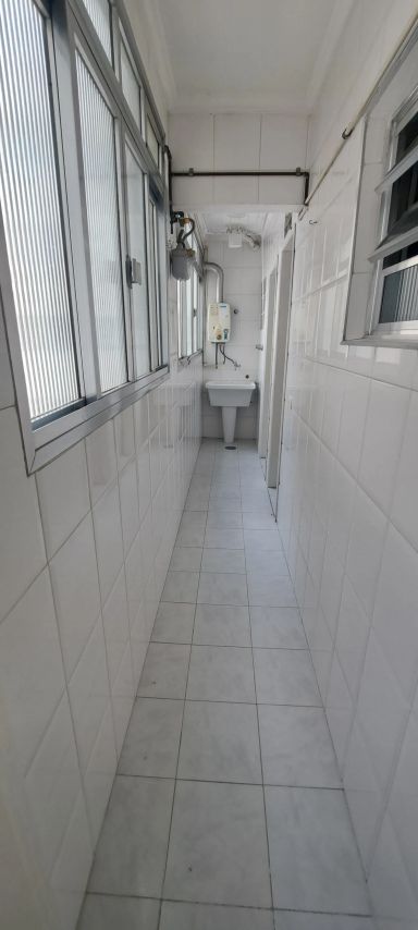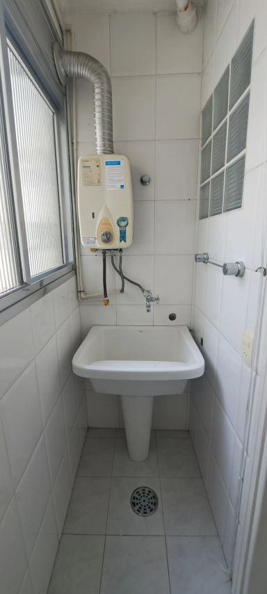 São 2 Quartos amplos, 2 Banheiros, Área de serviço e 1 Vaga, em um prédio excelente, mais de 20 metros de recuo da rua.